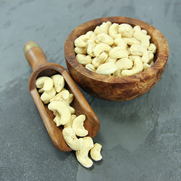 Whole Blanched Cashews are shelled at origin. It is possible for the nut to have black spots because of this process but it does not affect the taste of the product in anyway. Cashew nuts are widely used in Indian cuisine and add a sweet nutty flavour to any dish. They can also be eaten raw as a snack or further processed into other meals.