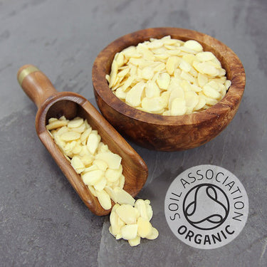 100% organic raw flaked Almonds are deliciously creamy and provide a natural source of protein, dietary fibre, vitamin E, other goodness and are free from preservatives and additives.Ideal for baking, decorating cakes or adding to muesli or cereal.