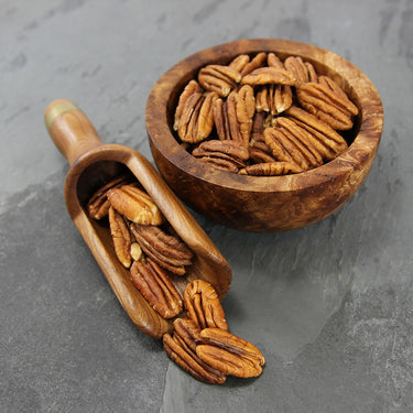 Pecan Halves look remarkably similar to Walnut Halves but differ in a variety of ways. The taste of pecans is more sweet and they are normally a light brown colour. They are used plentifully in baking, the obvious example being the traditional Pecan Pie where these nuts are used in abundance to both flavour and decorate the finished product. Due to their taste and texture they are also a terrific choice for a snack.