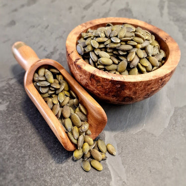 Pumpkin seeds are edible, flat, oval-shaped seeds found at the centre of the pumpkin fruit. When removed from the flesh, they can be rinsed and roasted, either plain or with other flavours such as herbs and spices to create a delicious, crunchy snack. Heat treatment reduces microbiological levels whilst intensifying flavour and texture.